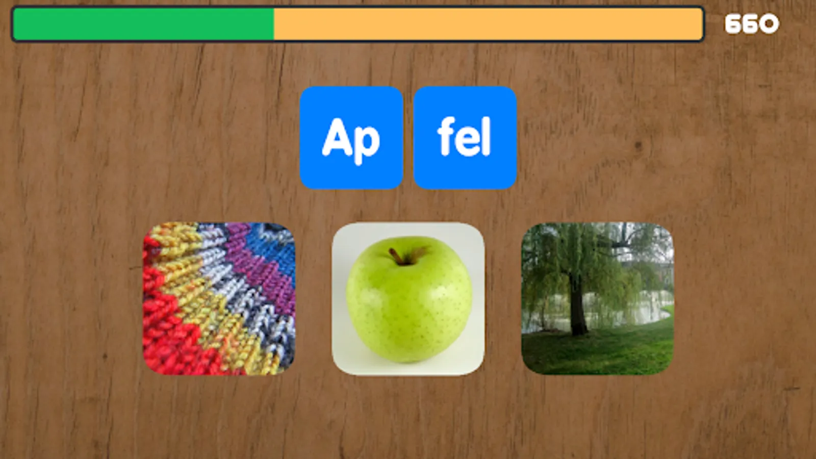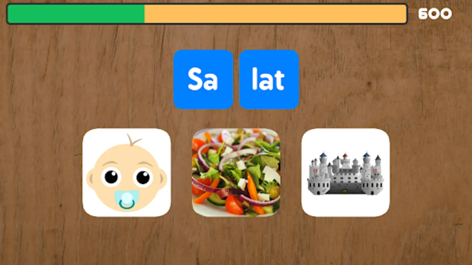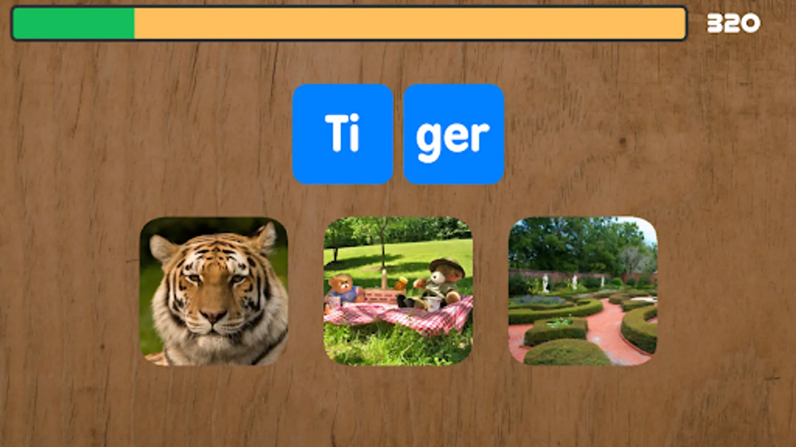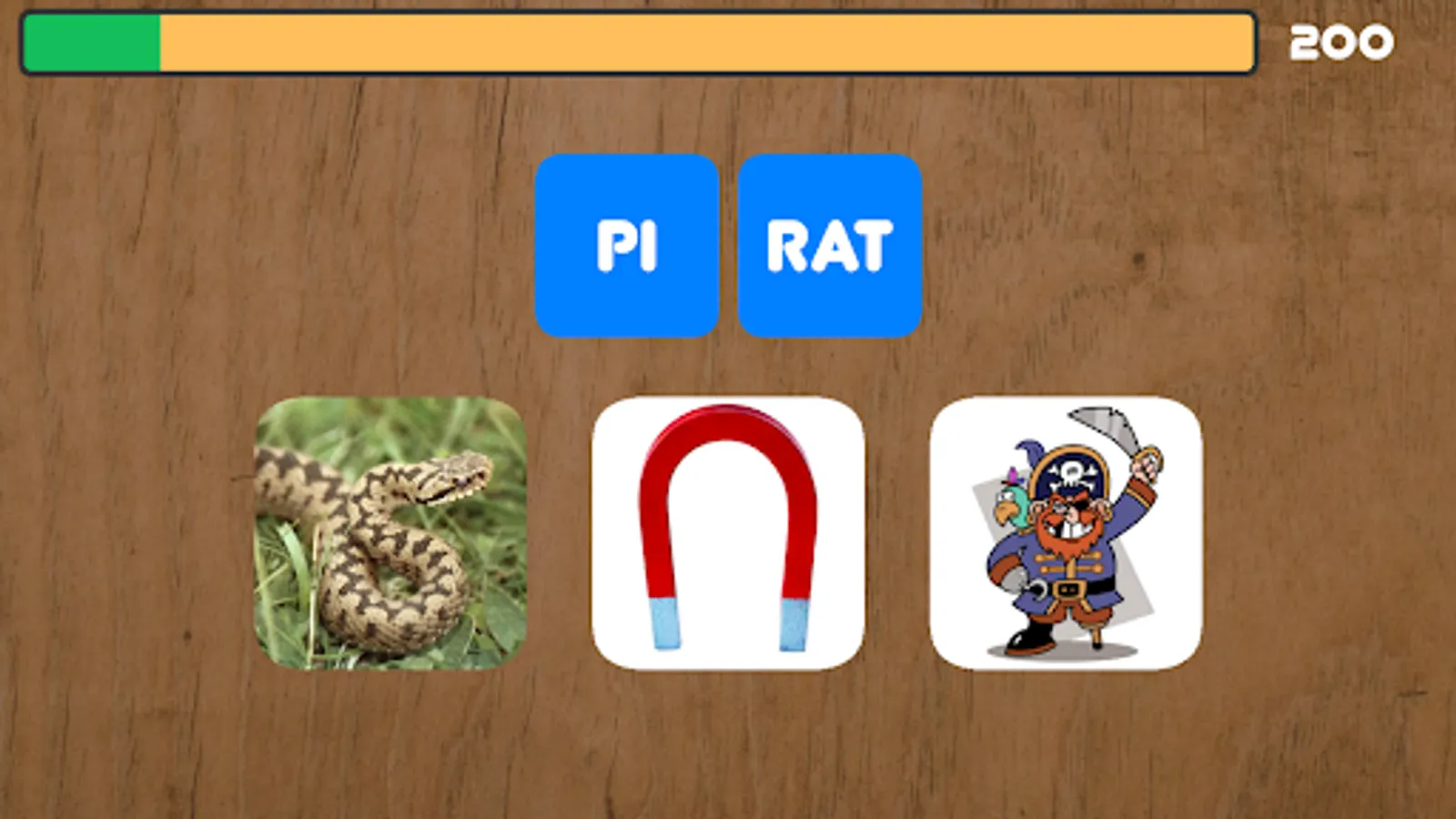 Read the word divided into syllables and choose the corresponding picture. If you choose the right picture, you can move on to the next word.