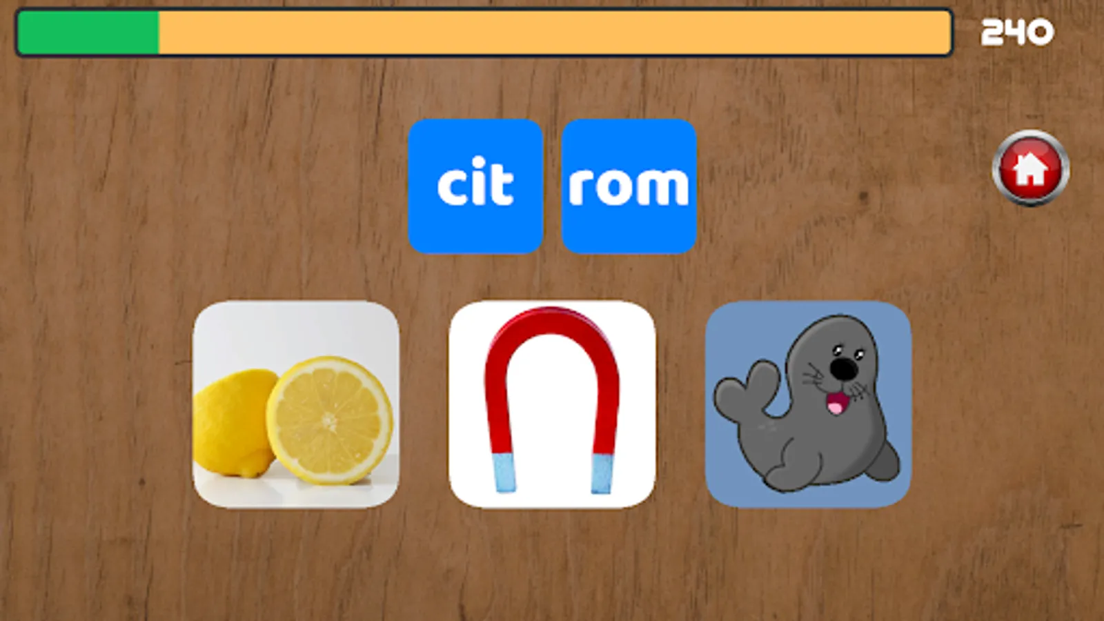 Read the word broken down into syllables, then choose the corresponding picture. If we have chosen the correct picture, we can move on to the next word. Lots of different words to play with and learn, all two syllable words.