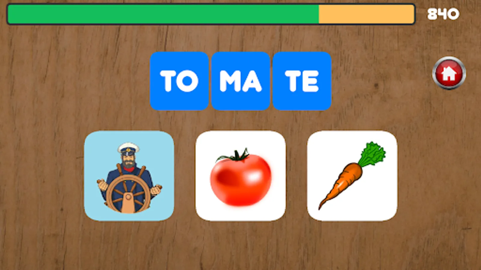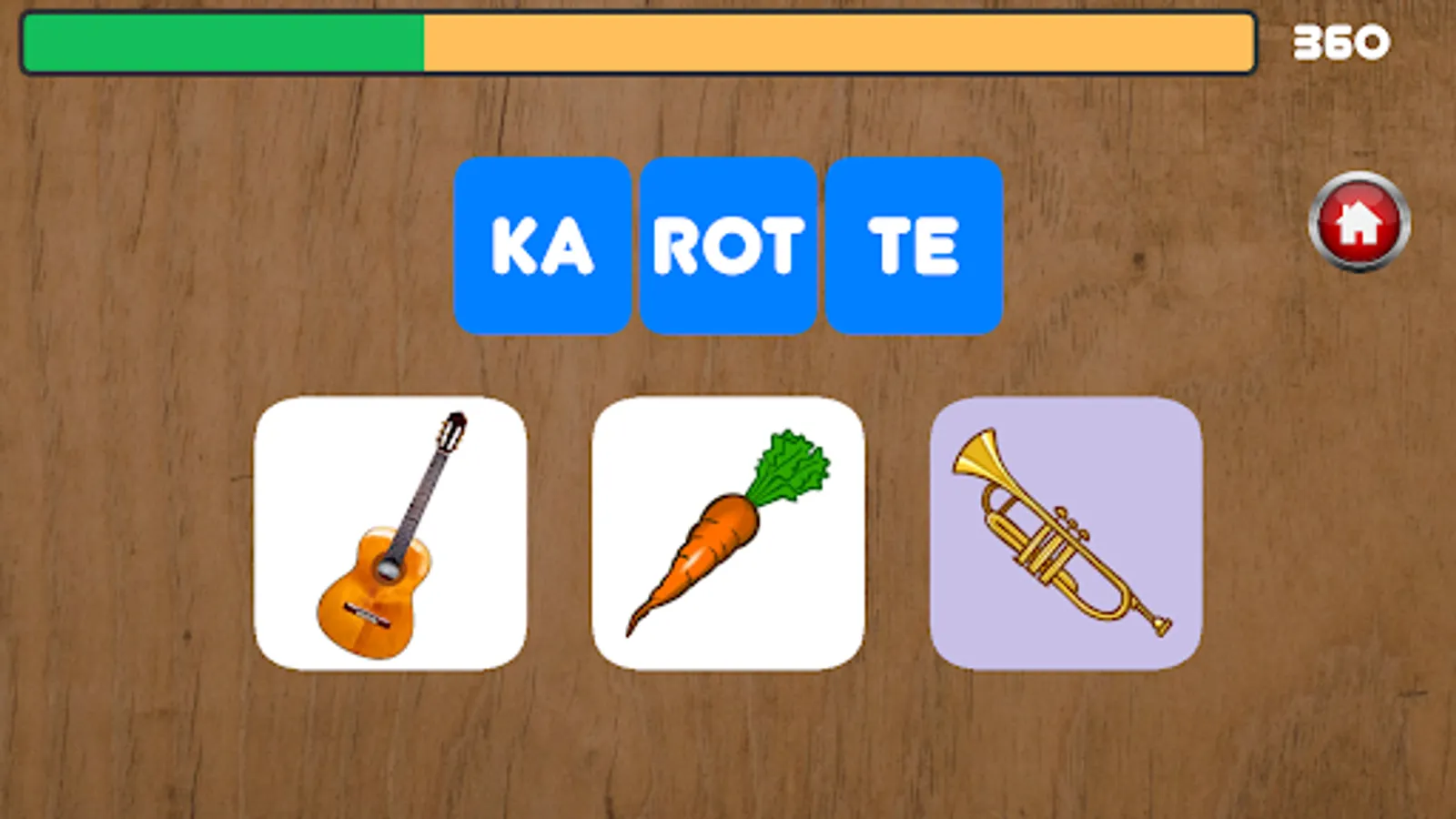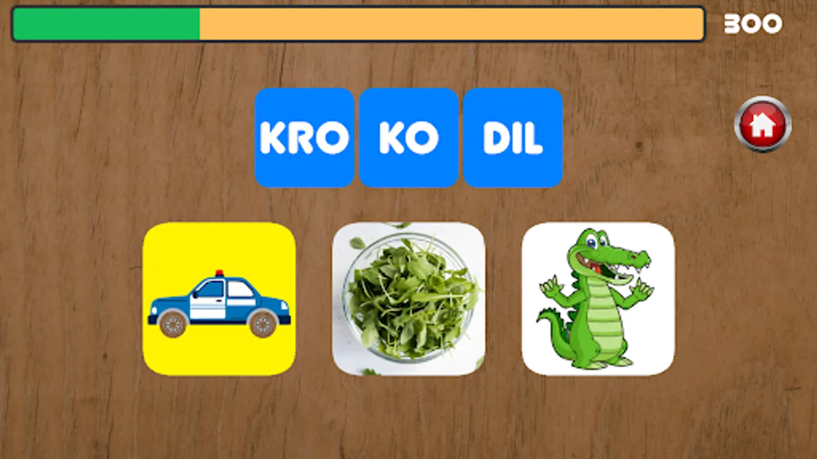Read the word divided into syllables and choose the corresponding picture. If you choose the right picture, you can move on to the next word.