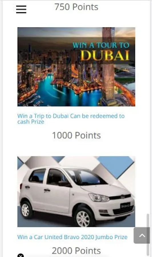Prize items include laptops, digital cameras, cash, vouchers, LCD TVs, consoles, perfumes, bags, netbooks, mobile phones, MP3 players, appliances, Bikes and Jumbo Prize include Cars.