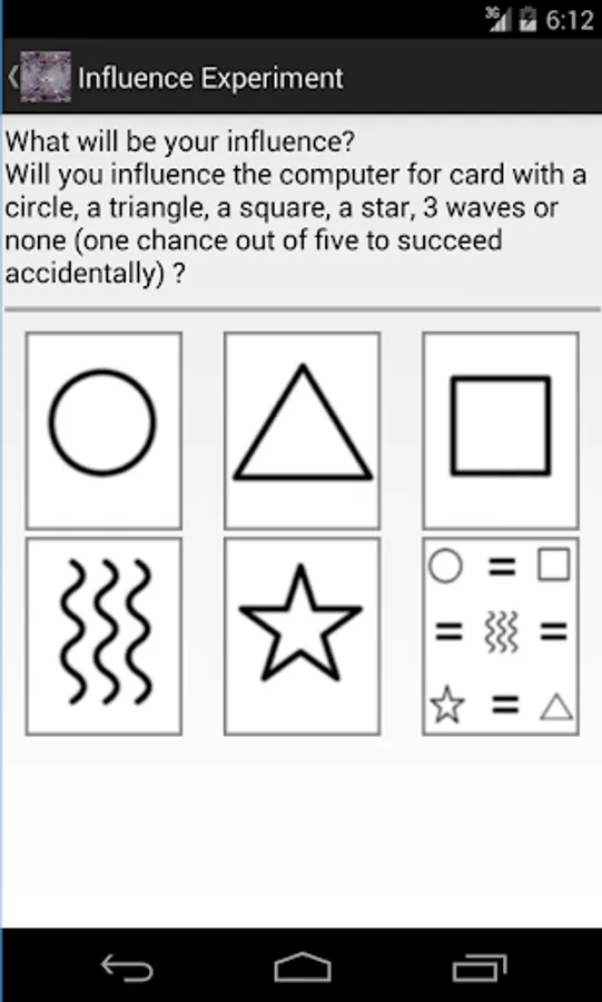 - Guess Experience: To test your ability to see the future, the computer will take a value and you will have to guess. You can use 0/1 values or the 5 psychic cards.
