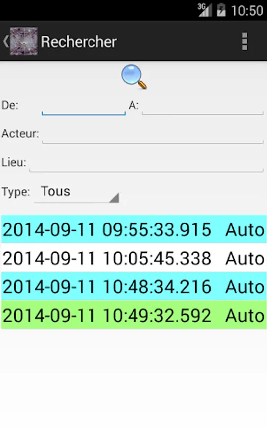 A right swipe (slide) will send the results by email, a left swipe (slide) will allow you to erase the experiment. A click will display all values associated with the experiment.