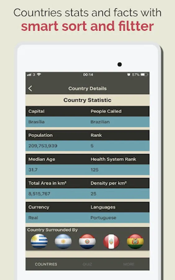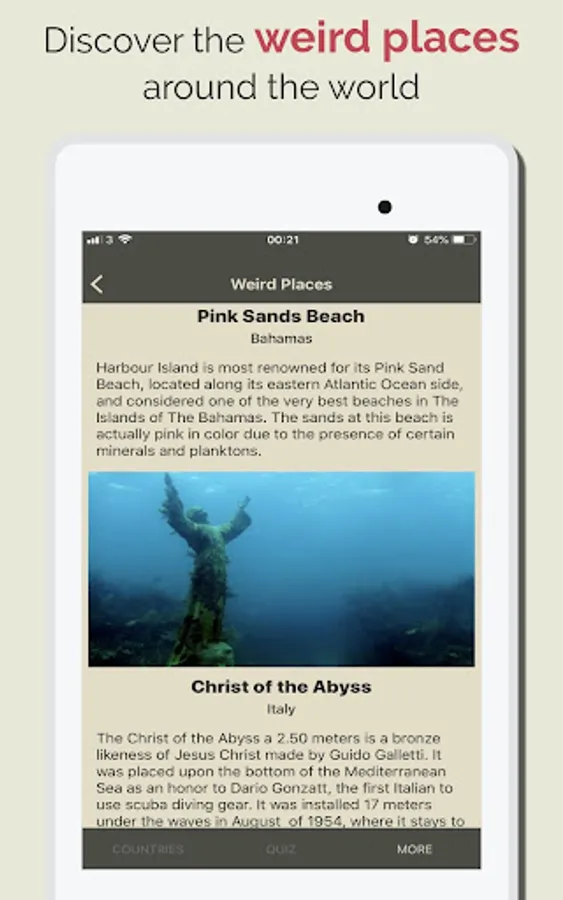 Discover Countries Learn about the countries of the world by installing the app, it gives you access 215 countries of the world. It is an educational and fun app where you can learn things about countries like.
