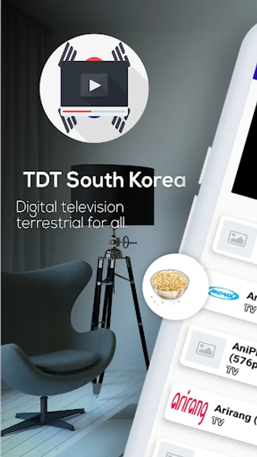 이 앱은 저작권 국제법에 의해 보호되는 콘텐츠를 스트리밍하지 않지만 한국에서 TDT 채널을 엽니다.