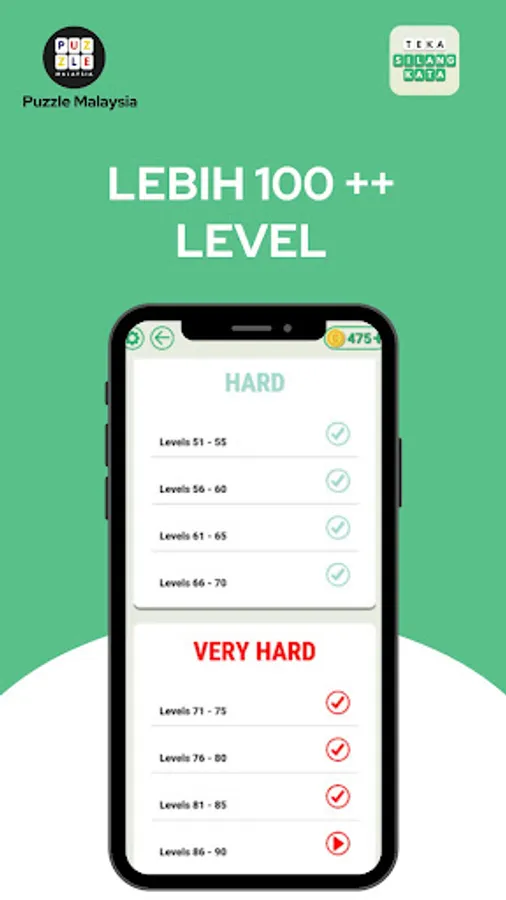 - isi tempat kosong di setiap kotak untuk membuka level seterusnya