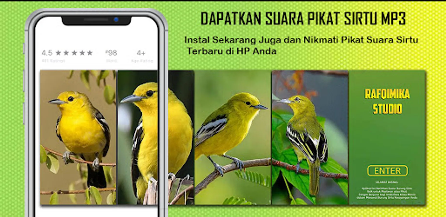 Hello chirping mania, this Mp3 Sirtu Bird Attracting Sound Application contains a collection of sounds of sirtu or sirpoh or cipoh birds chirping as material for mastering other birds or this bird itself is known as stuffing, as an attracting material to make it sound more often or a training tool so that it sounds consistent, it can also be used for a bird generator to want to sound or a solution to the jammed sound of chirping birds.