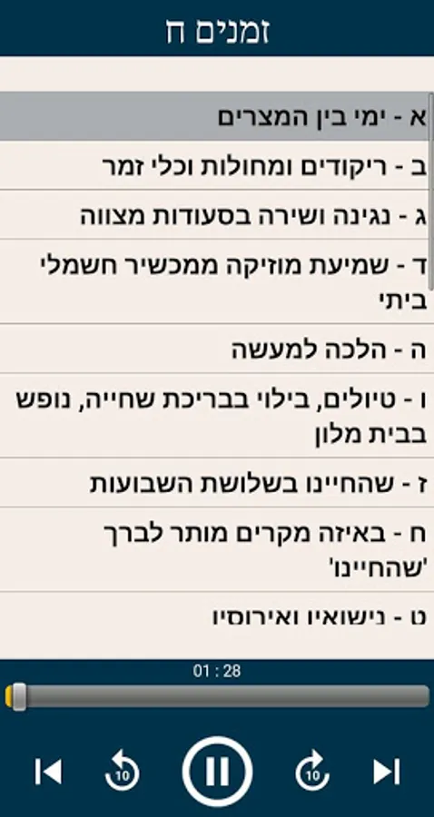Tefilah – the foundations of the laws of prayer, the preparations before prayer, the three prayers themselves, the Amidah, the Shema prayer before sleep, the appropriate place for prayer and the minyan, the differing versions of prayer, and more.