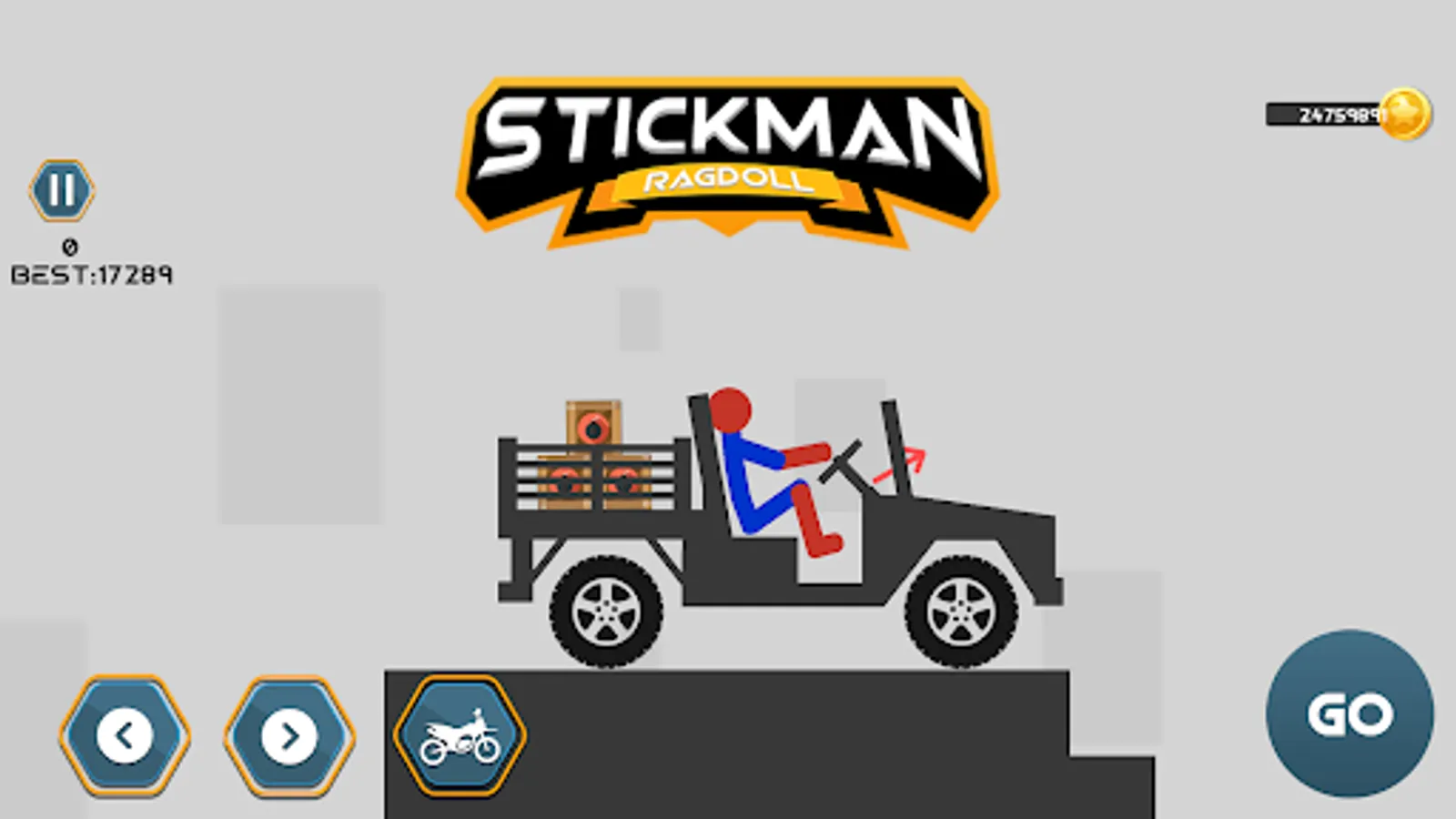 Stickman Dismount Ragdoll game has deadly traps complete for exciting reward. Physics ragdoll Break Bones and destroy Vehicles like bikes, cars, and jeeps. Perform a Stunt to dismount your stickman. More you play for bone fracture destruction more kits of superhero ragdoll biker and special skills unlock. Hold the start button to release stickman for ragdoll dismount and create much damage as possible.