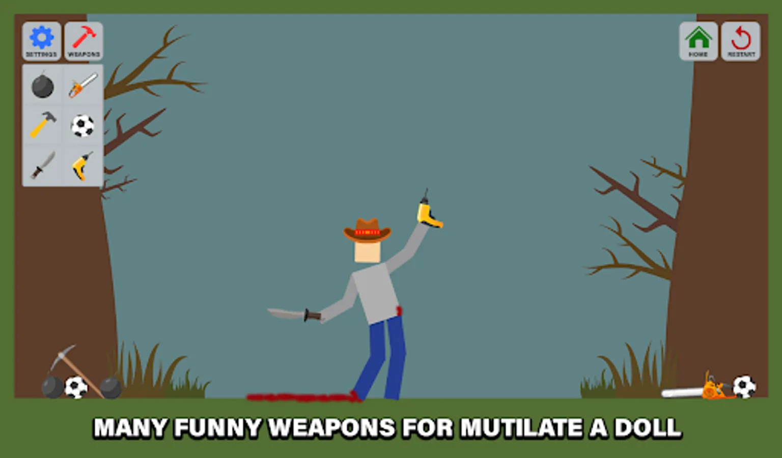 - Also you have a lot of weapons, and items and other funny things that you can use for Mutilate A Doll.