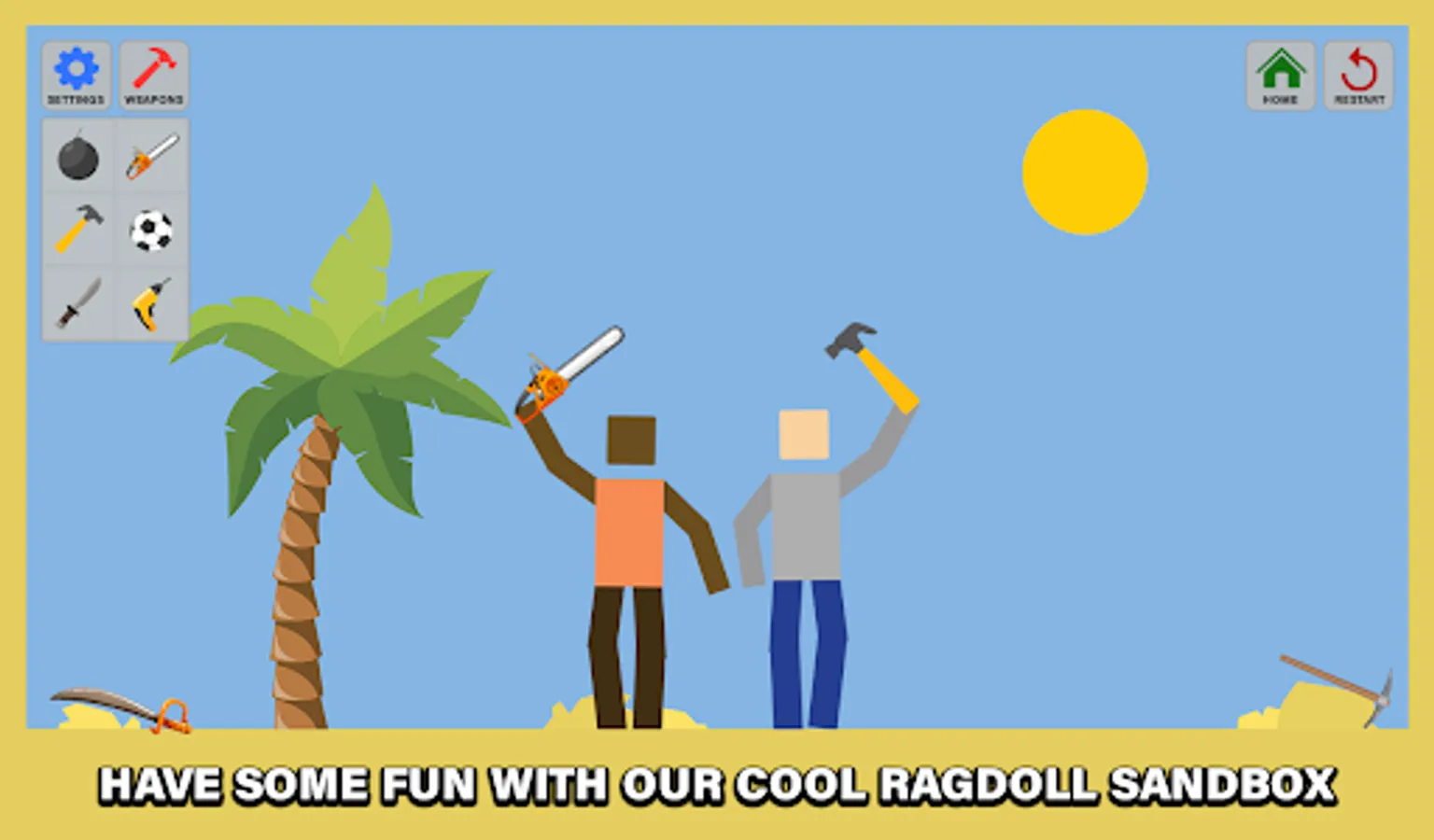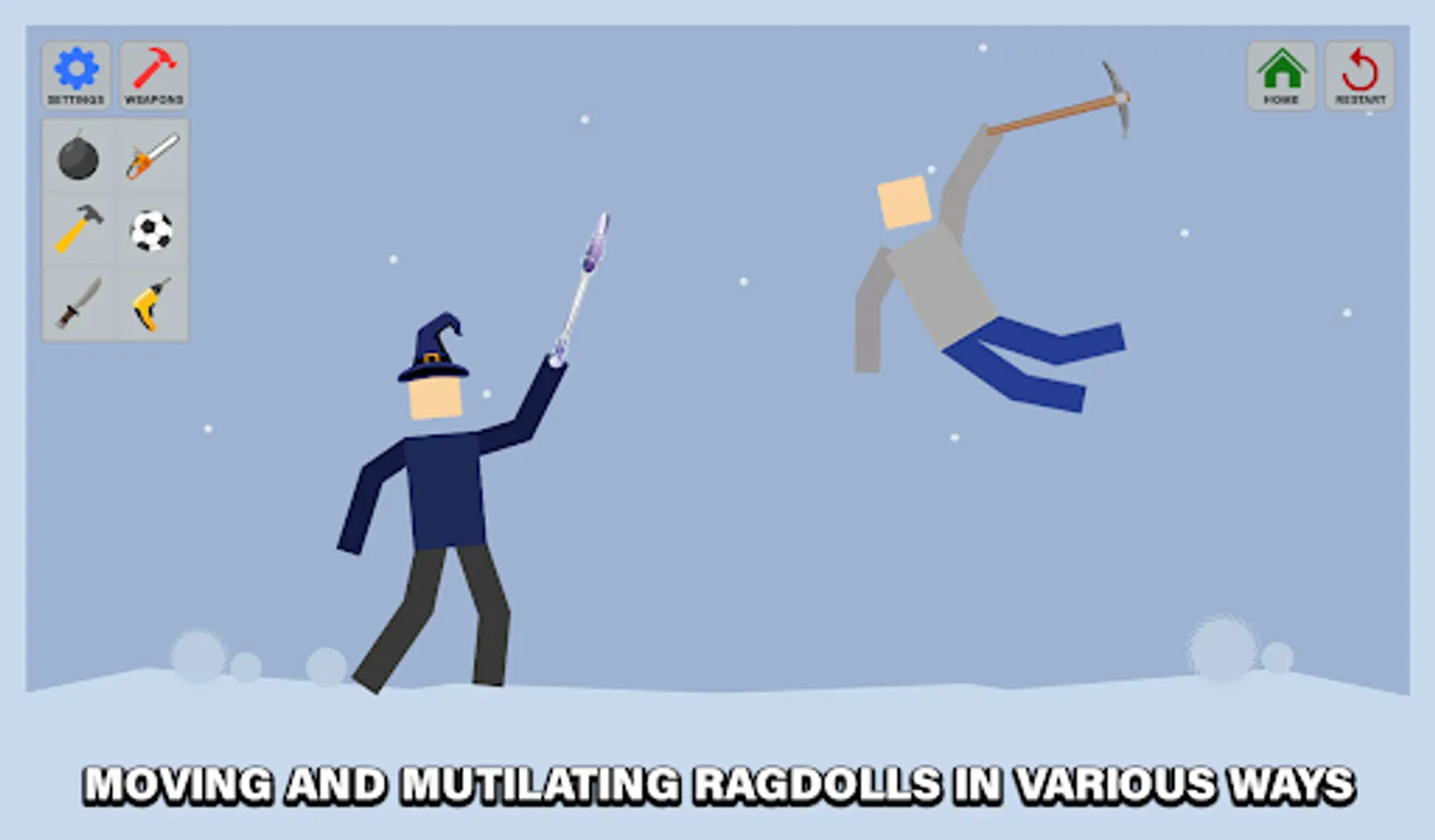 - Great Ragdoll sandbox graphics and animations.