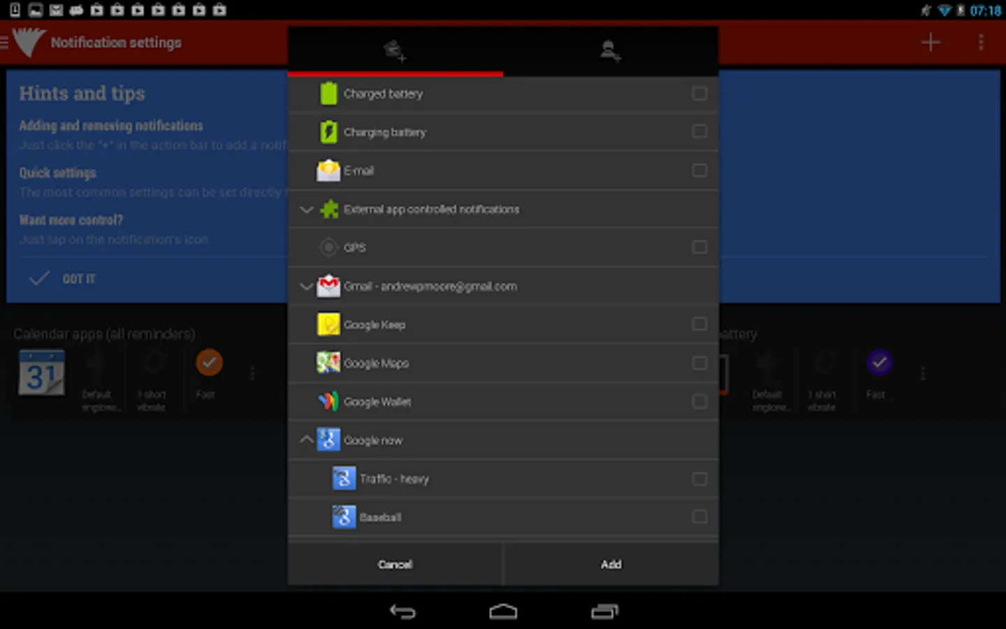 This app will allow you to control the notification color for the over 600 applications and system events such as: