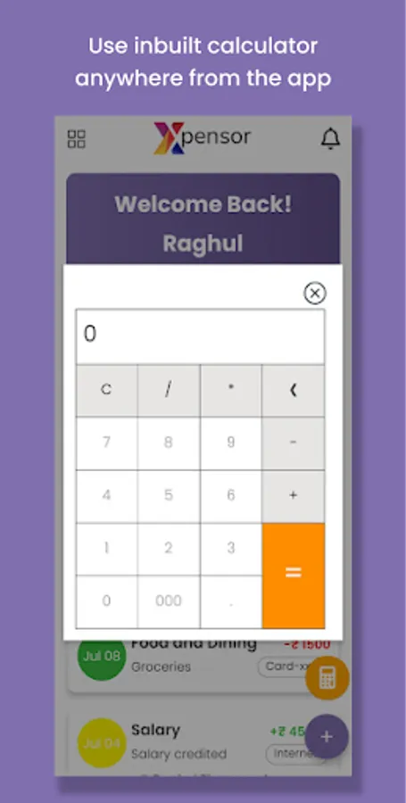 An inbuilt calculator which can be accessed anywhere from the app for quick calculations.