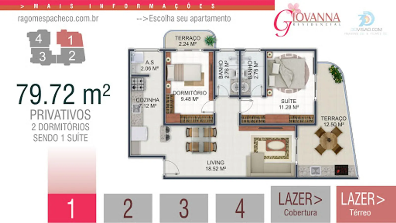 Apartment with: Living, 1 and 2 bedrooms and 1 suite, kitchen, laundry area, individual lockers downstairs, gourmet terrace with barbecue.