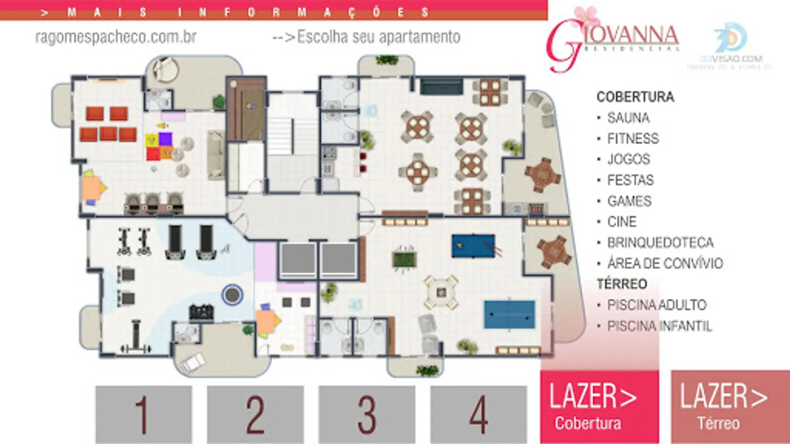 Leisure area with: Fitness Room, Game Room, Reception Hall, Deck, rest area, Cine, Toy, Sauna, Adult Pool, Kids Pool and spacious living areas.