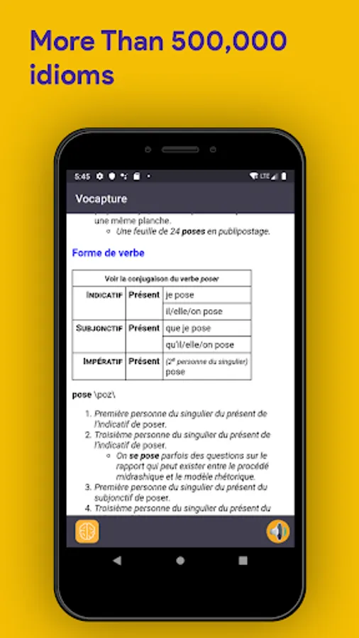 Vocapture is the leading Spanish dictionary app for Android – with over 600,000 definitions from the Spanish Wiktionary. It works entirely offline without any further file to download!. Install the dictionary for access to definitions whenever you need them.