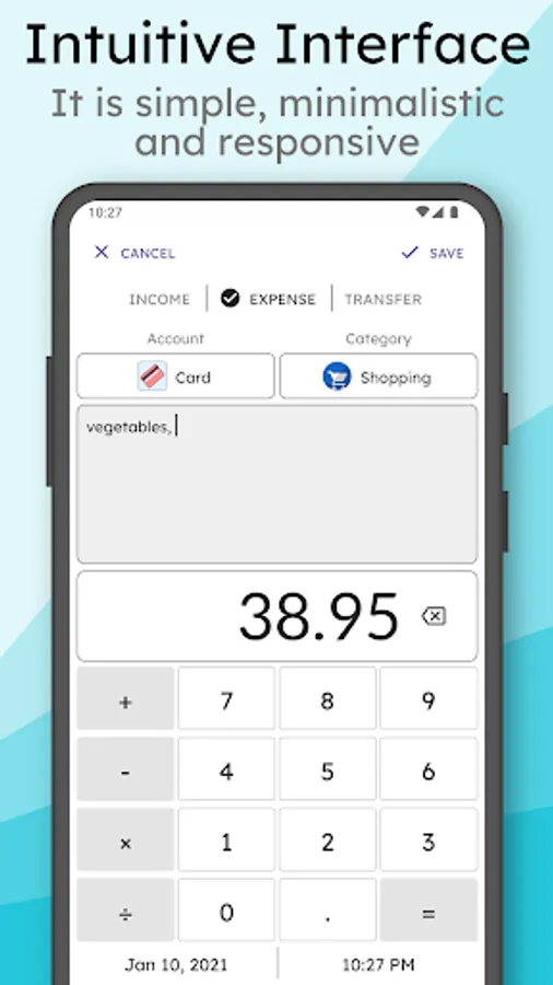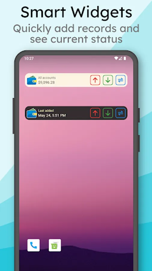 MyMoney's customizable homescreen widget will help you keep an eye on your balance and add records on the go.