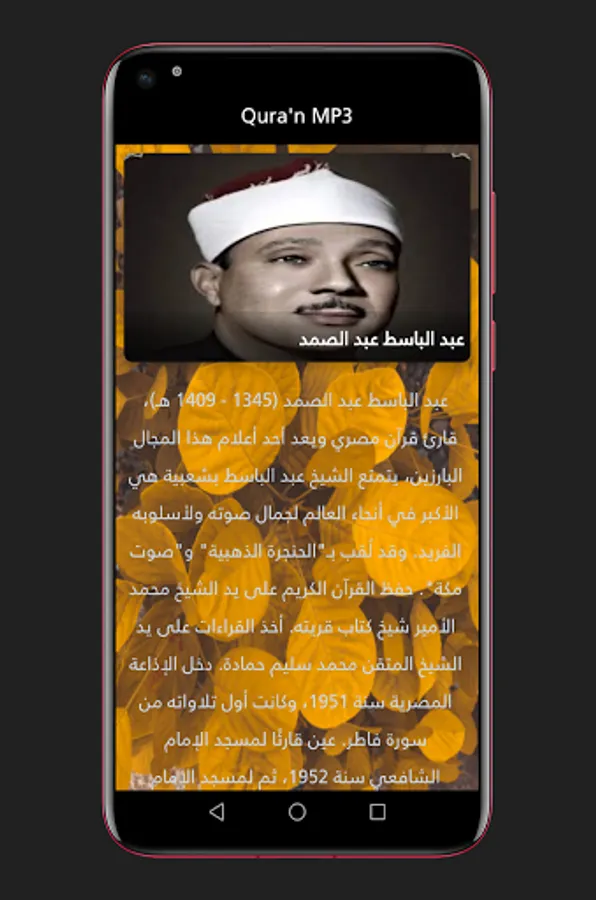 Si está buscando una aplicación para escuchar las suras del Sagrado Corán completamente sin ninguna interferencia o interrupción y con resolución y claridad de alta calidad, le proporcionamos una aplicación Qura'n MP3, en la que recopilamos para todos ustedes las suras del Sagrado Corán se muestran y puedes escucharlas a través de videos a través de tu conexión de red (en línea) Con una voz dulce que se estremece por él, es recitada por el mejor de los jeques entre ellos, Sheikh Al-Sudaisi, Sheikh Mishary Al-Afasy, Yasser Al-Dosari y Ahmed Al-Ajami, donde recita una sura, que incluye Surat Al-Baqarah, Imran Wes, Al-Saffat, Al-Nisa, Al-Kahf, Youssef y otros, descargue la aplicación Qura'n MP3 y escucha con toda reverencia