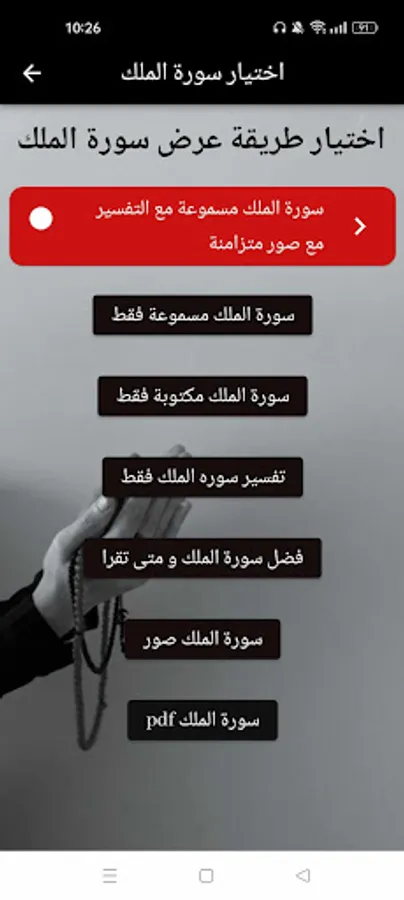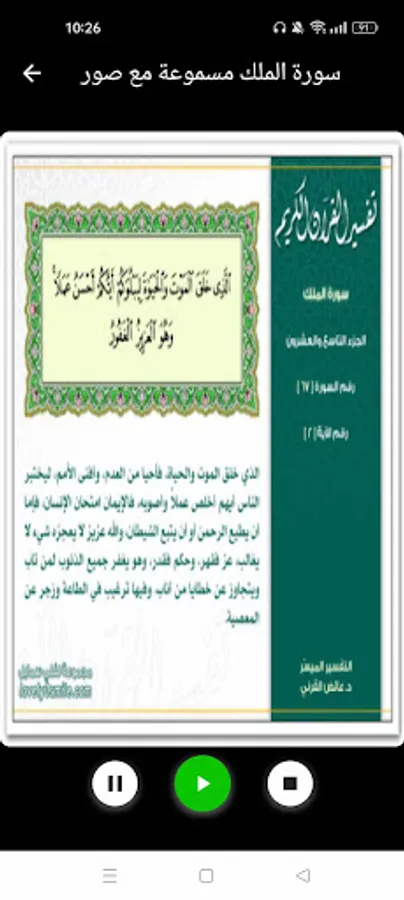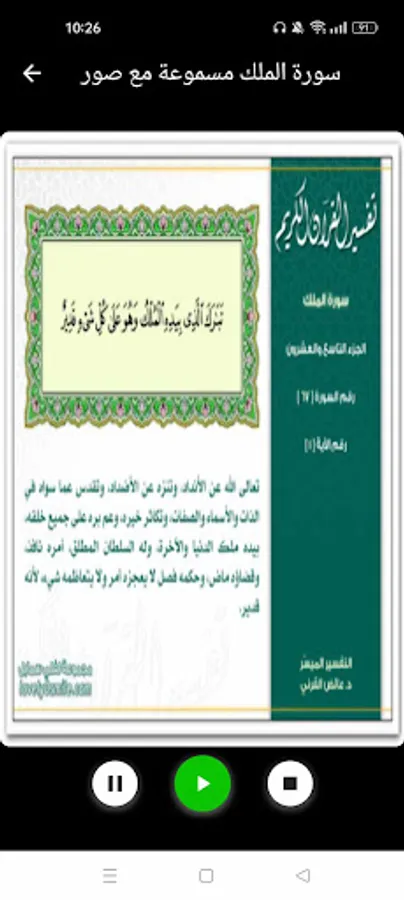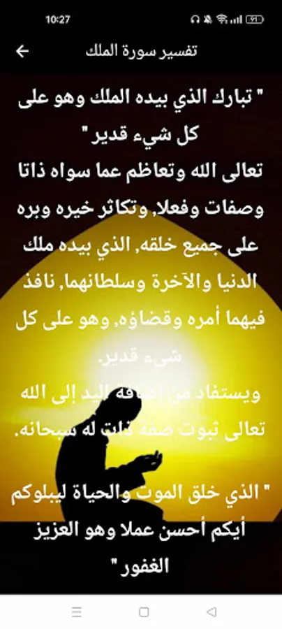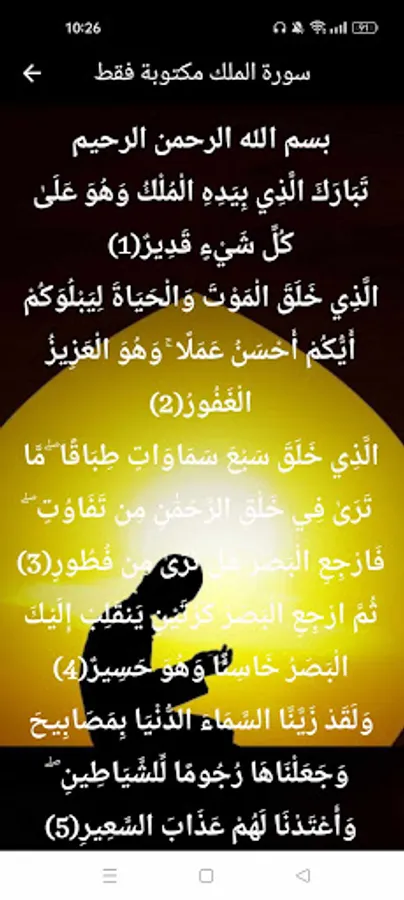 Surah Al-Mulk written and audible interpretation of the application contains: