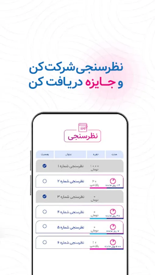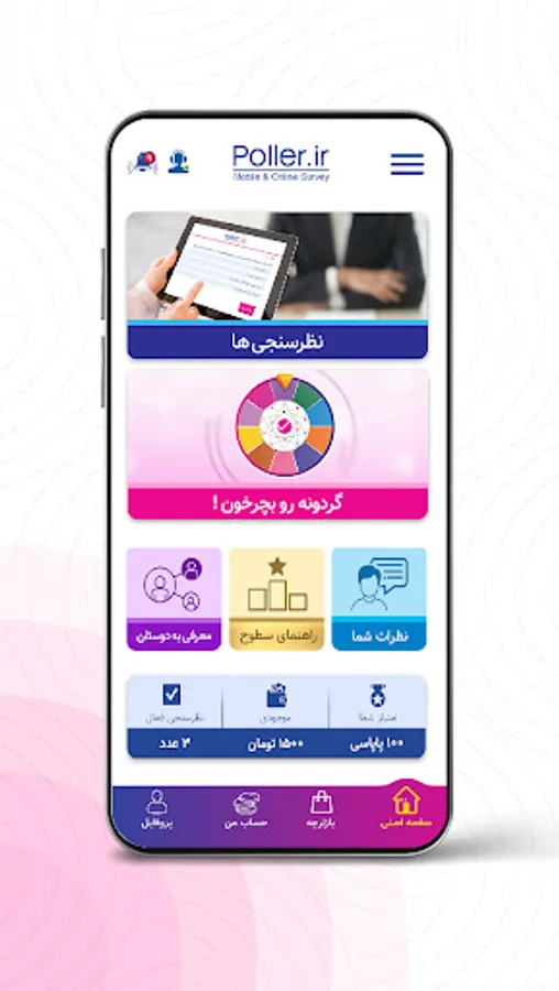 نظرسنجی های متعددی در پولر قرار داده می شود و شما با شرکت در آنها می توانید هم نظر خود را اعلام کنید هم امتیاز کسب کنید و برنده جوایز نقدی و غیرنقدی پولر باشید. در پولر شما با پاسخ دادن به نظرسنجیها امتیاز (پاپاسی یا تومانی) دریافت میکنید. امتیاز و موجودی خود را می توانید در بازارچه پولر خرج کنید و از کدهای تخفیف متنوعی استفاده کنید.
