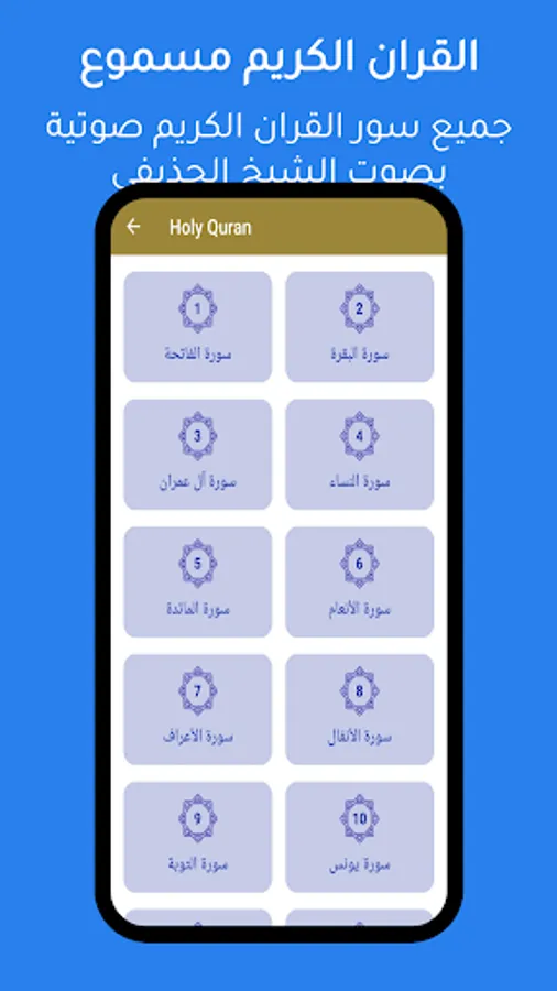 - The application contains fully and in the voice of Sheikh Al-Hudhaifi, can be heard without the need for an online presence