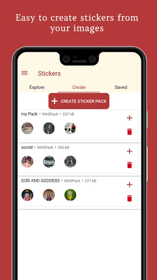 🔸 Create new sticker pack from your devices images or make new stickers.