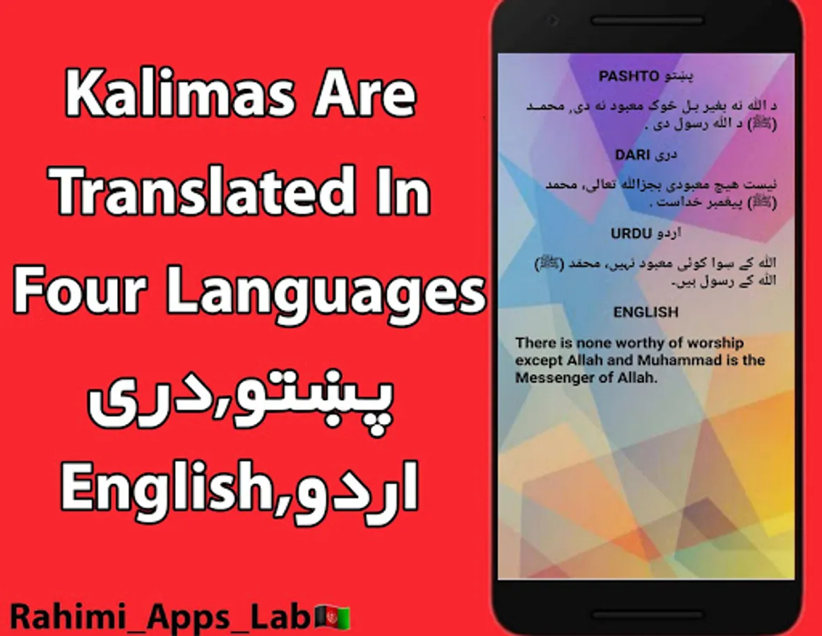 >Translation feature helps in understanding the meanings of each Islamic Kalma in Pashto Dari Urdu and English.