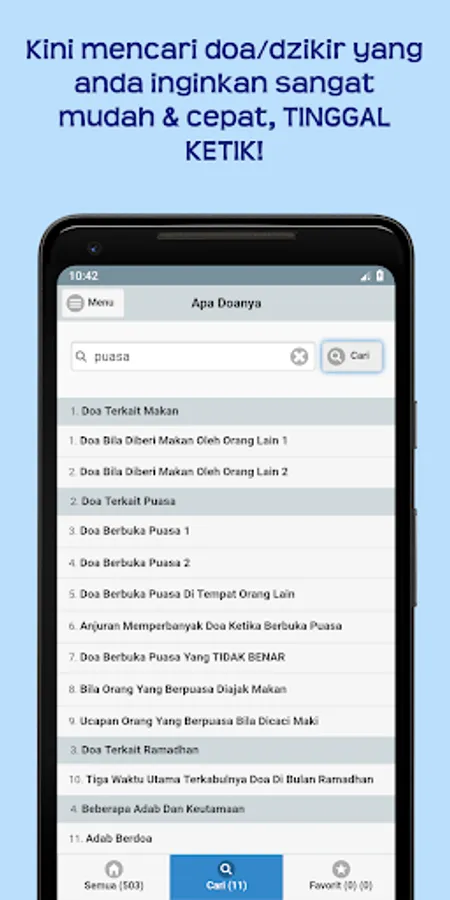 •Fitur "Cari"! Mencari doa/dzikir yg anda inginkan, tinggal ketik!
