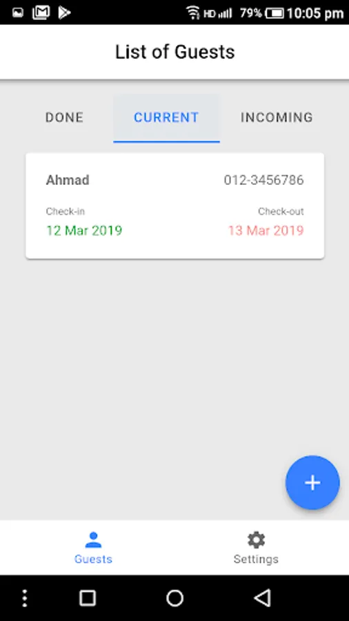 This is an app used for Rahmat Homestay's admin to monitor the list of guests incoming and out of their homestay.