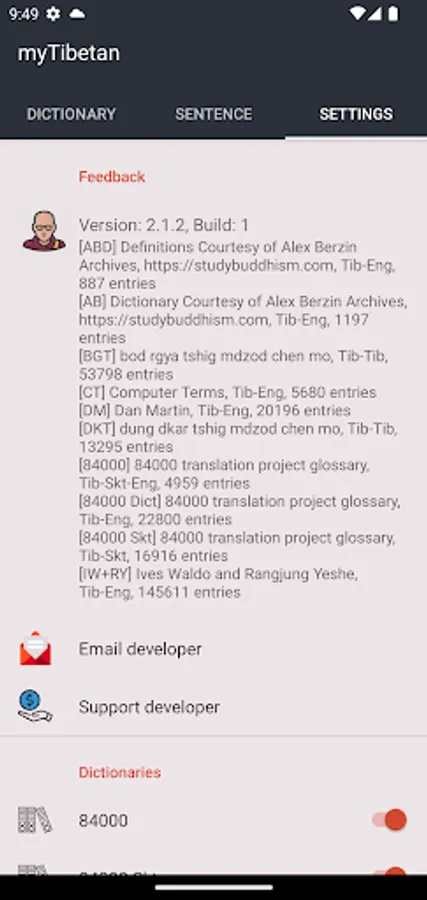 The app comes with several publicly available dictionaries. If I missed a reference or author mention, please contact me to fix that.