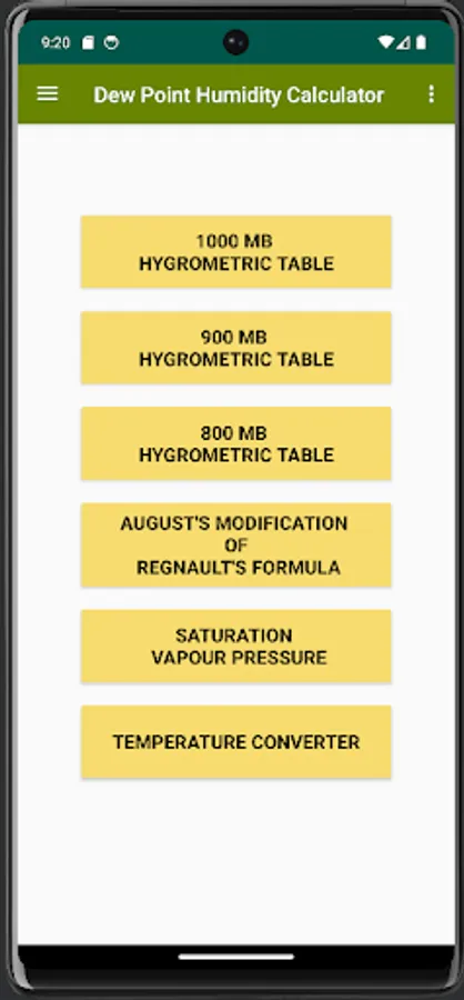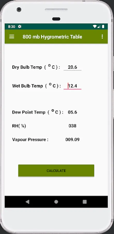 This app has been developed as per India Meteorological Department published Hygrometric Table. So data of this App are WMO (World Meteorological Organization) Standard. This data can be used in Meteorological Surface Observation and research purpose world wide.