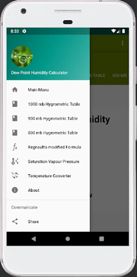 Dew point Humidity calculator App is the best app to find the temperature at which the water vapour of the atmospheric air must condense into liquid water and reaches its coolest point called the saturation. You can calculate the dew point temperature at which the air moisture converts into water using this calculator app.