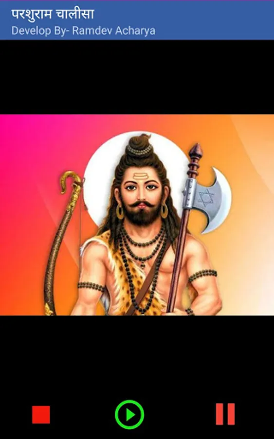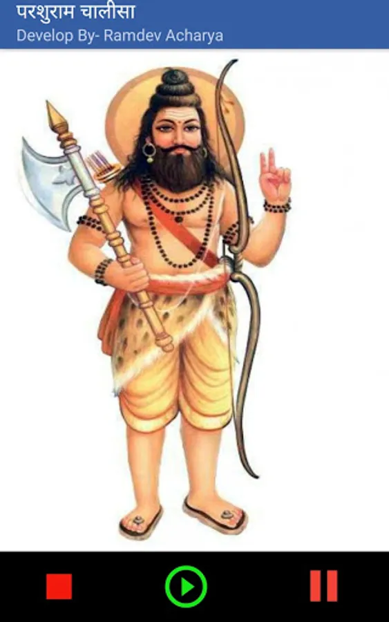 Parshuram Chalisa Audio Application In this app, Lord Parshuram ji's chalisa is sung by Ramdev Acharya.