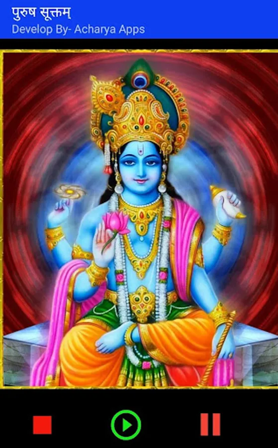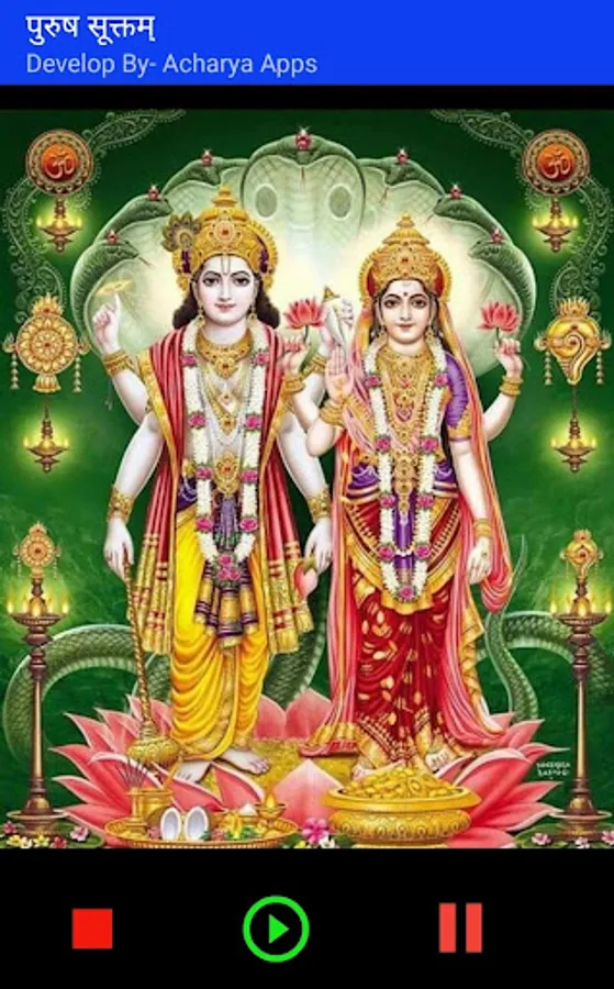 In this mobile application, the text of Purush Suktam is presented with pictorial audio. In the title of Purusha Sukta, Puru is referred to as Param Purush, Purushottama, Narayana as Virat Purush. He was the source of all creation. It describes this form of it, whose innumerable heads, eyes, feet, appear everywhere, and are beyond the scope of any finite method. The whole creation is but a quarter of it. The rest is latent.