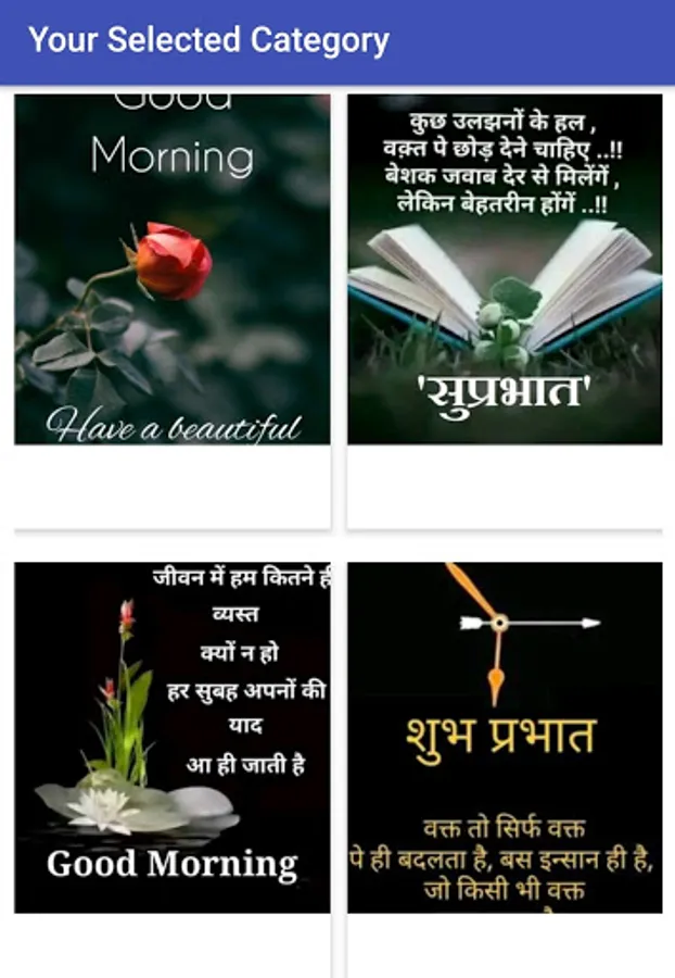 All the daily categories have been included in the app compilation of good wishes and good messages for daily needs.