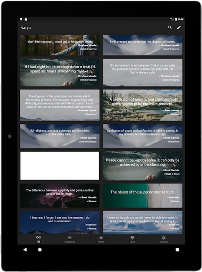 Satya is a collection of over 100000 carefully handpicked proverbs. This is the most simple and elegant quotation app, from a number of categories and authors.