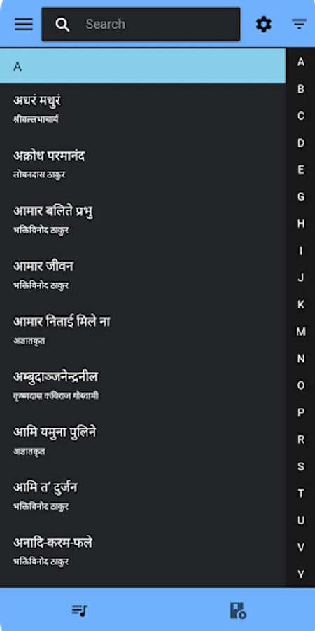 • Classification according to Alphabetical, Authors, Temple Songs, Ashtakams