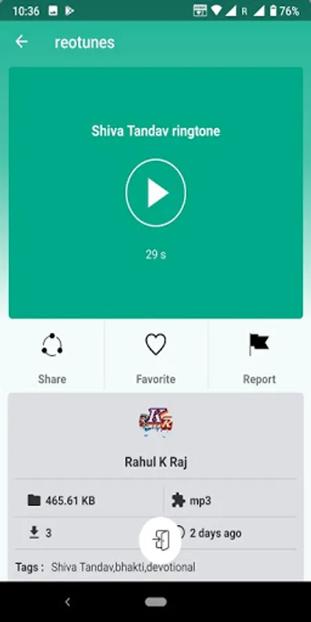 App allows user to download and set ringtones in just one clicks.Set them as your alarm tones,notification tone or even message tone through "set ringtone" button,Share buttons are displayed below the ringtones.