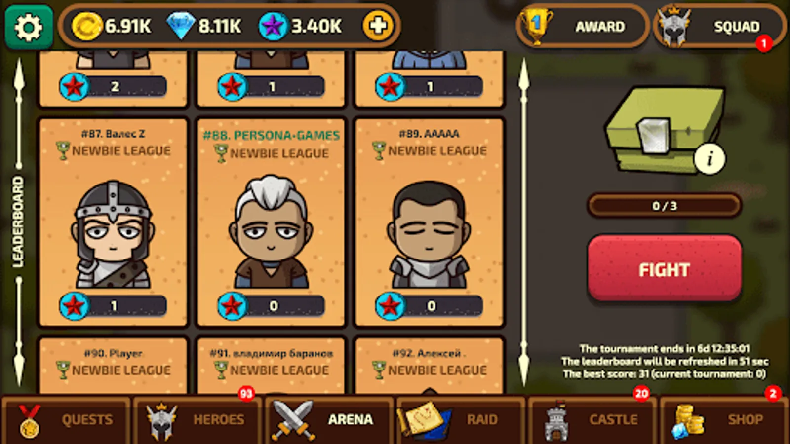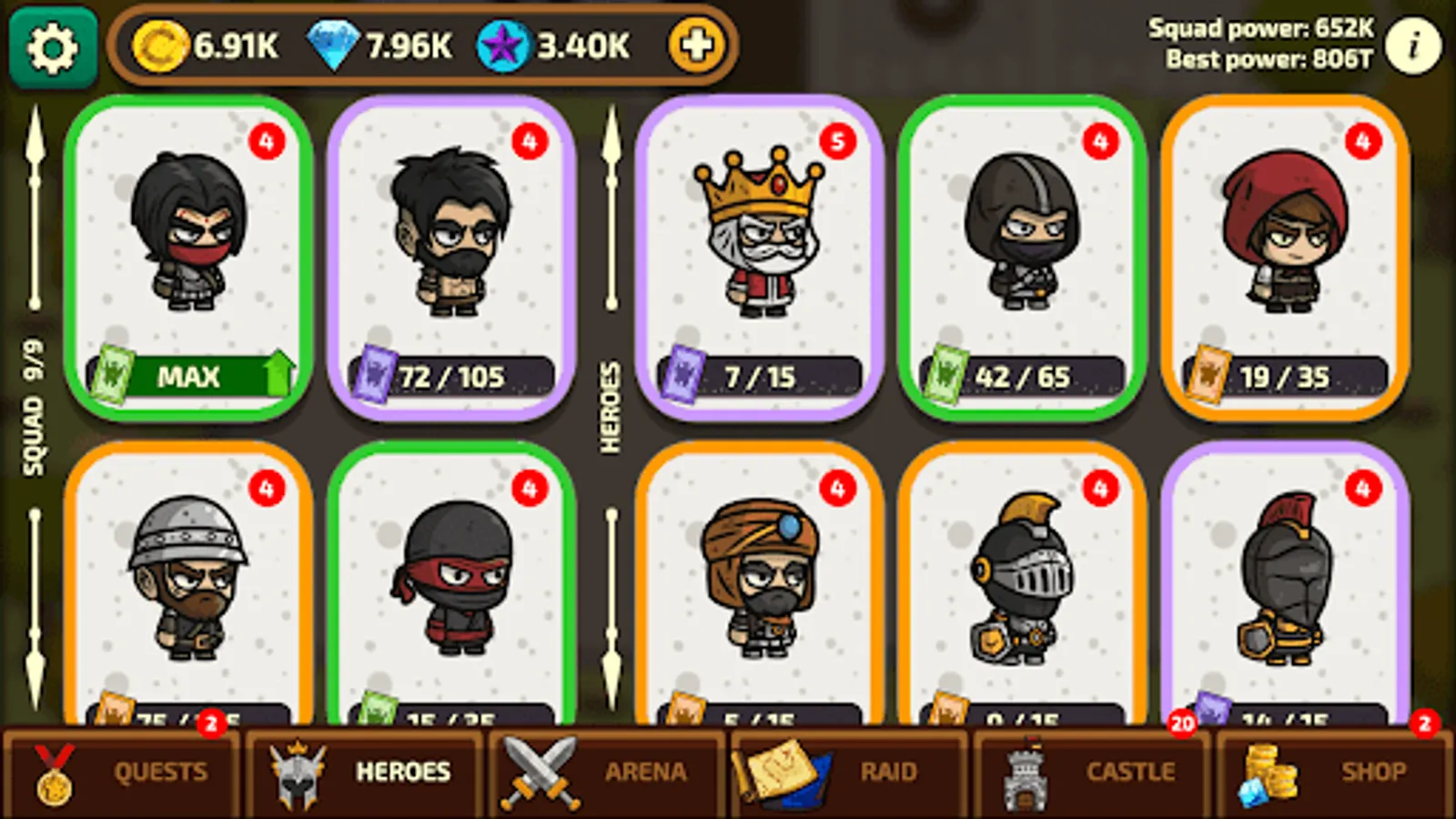 - Fetch rewards and tap tap tap to upgrade your knight, assassin or another hero. They are already not idle heroes, they are legends of the arena! ;)