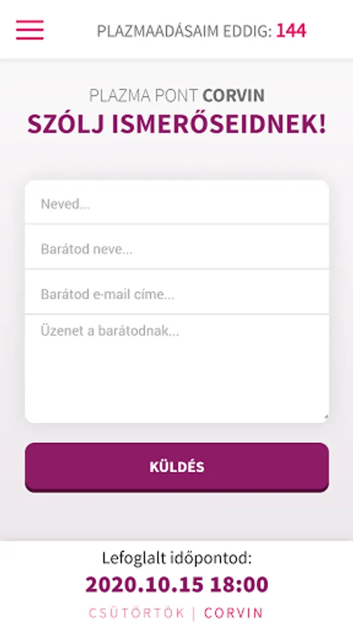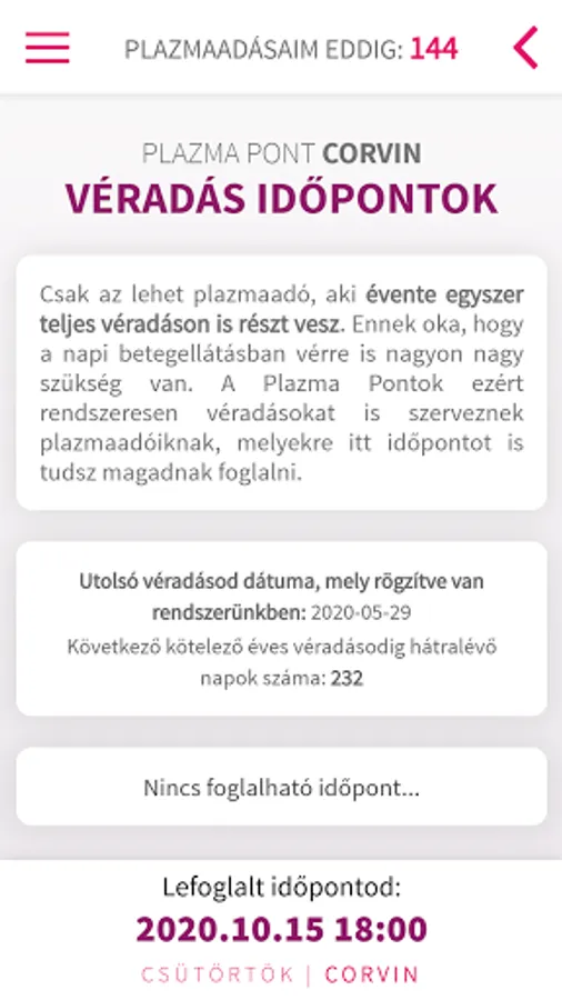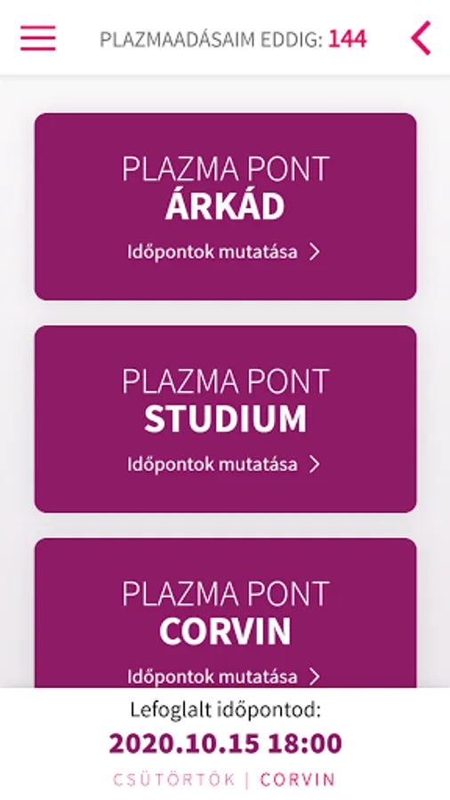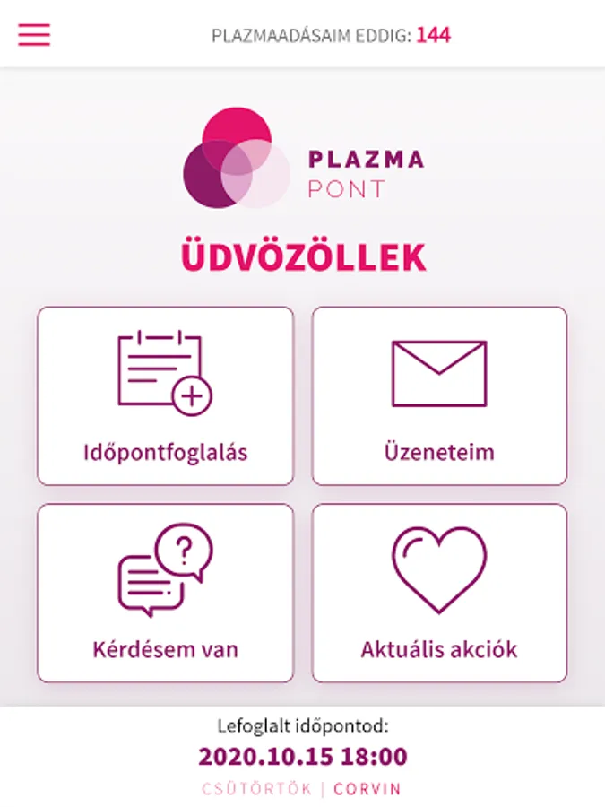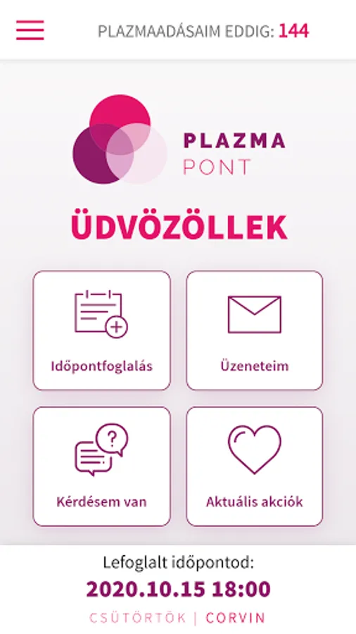 Our application enables real-time online login for our plasma donors! If you are also our plasma donor, download our application to try the new and fast way of booking an appointment. To log in and make an appointment, it is enough to enter your donor number and date of birth. After logging in, our Szeged plasma users can choose whether they want to book an appointment at our Plasma Point on Mikszáth Street or Kígyó Street. Our Budapest plasma donors can choose from the Studium, Corvin and Árkád centers before booking an appointment.