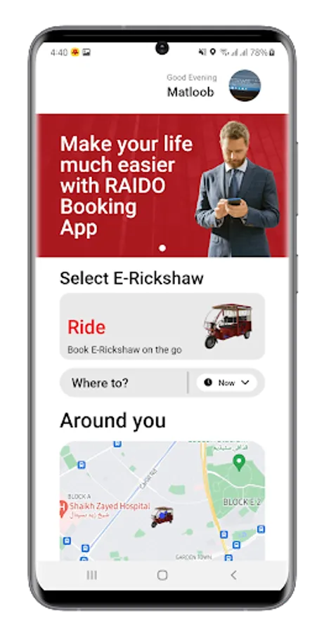 Raido is a mobile app, which you can use to submit a trip request that is automatically sent to a Raido driver near to you, alerting the driver to your location. The accepting Raido driver will then come and pick you up and drive you to your requested destination. After ride completion you can give your feedback about driver. Also use the online payment feature to pay the Fare.