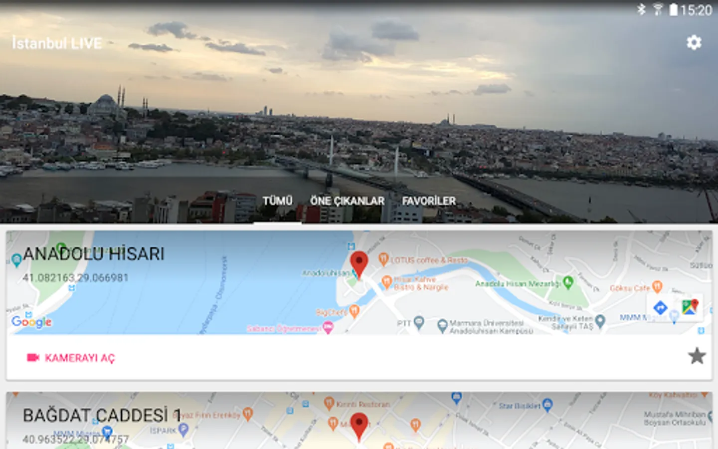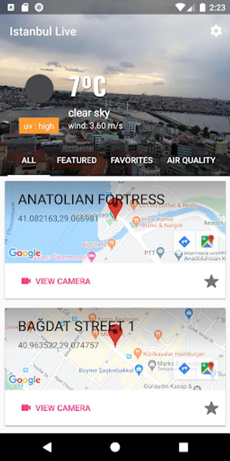Istanbul touristic high quality live city cameras on your mobile device with Istanbul Live Android application. You can watch most famous historical and popular places in the Istanbul city with Istanbul LIVE application.
