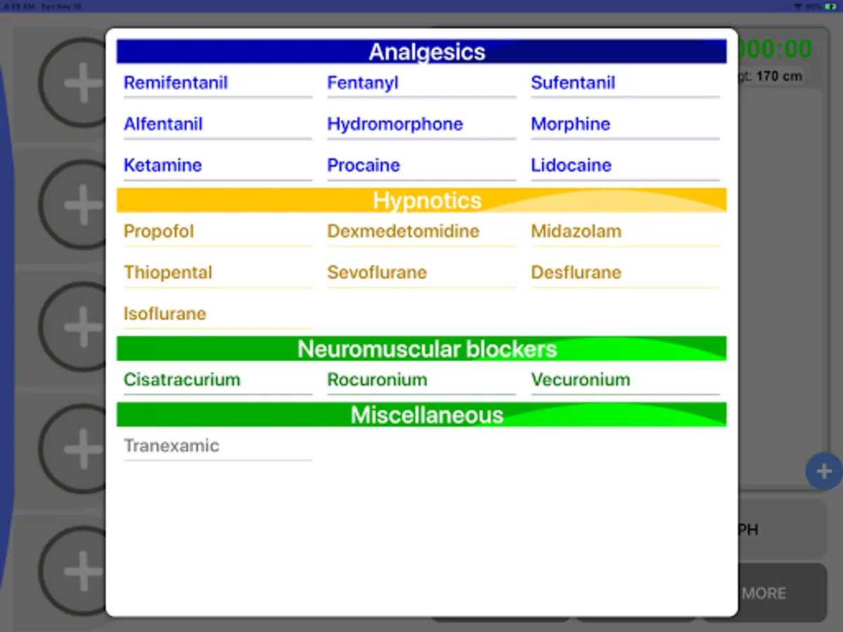(Remifentanil, Fentanyl, Sufentanil, Alfentanil, Hydromorphone, Morphine, Ketamine, Procaine, Lidocaine, Propofol, Etomidate, Dexmedetomidine, Midazolam, Remimazolam, Thiopental, Atracurium, Cisatracurium, Rocuronium, Vecuronium, Sugammadex, Tranexamic, Magnesium sulfate, Diazepam, Heparin and Protamine)