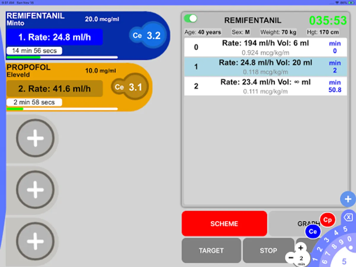 Take control of TCI pumps like never before! iTIVA expertly simulates TCI pump behavior, allowing you to calculate infusion schemes to attain and maintain desired target concentrations in plasma or effect site. It's like having a reliable assistant right at your fingertips.