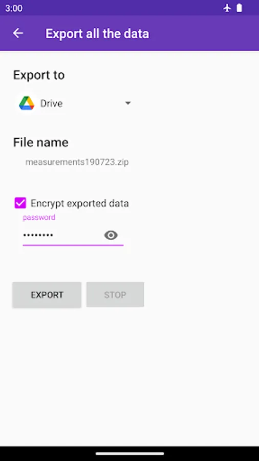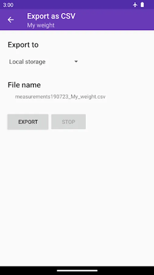 Measurements can be exported as a comma-separated-values (CSV) file.