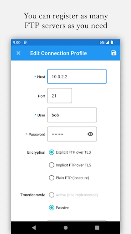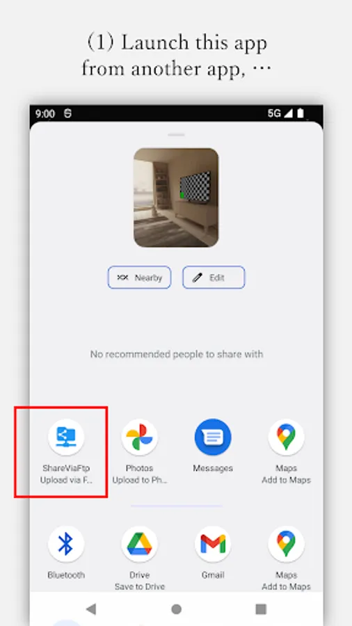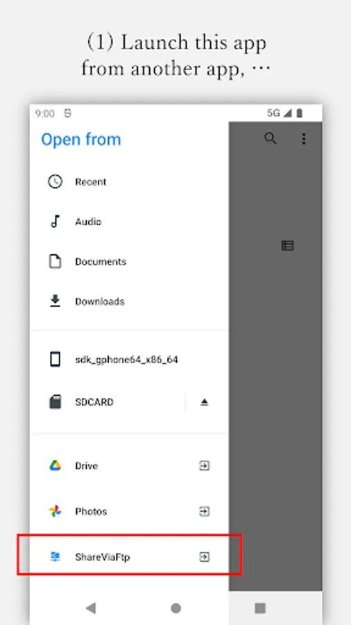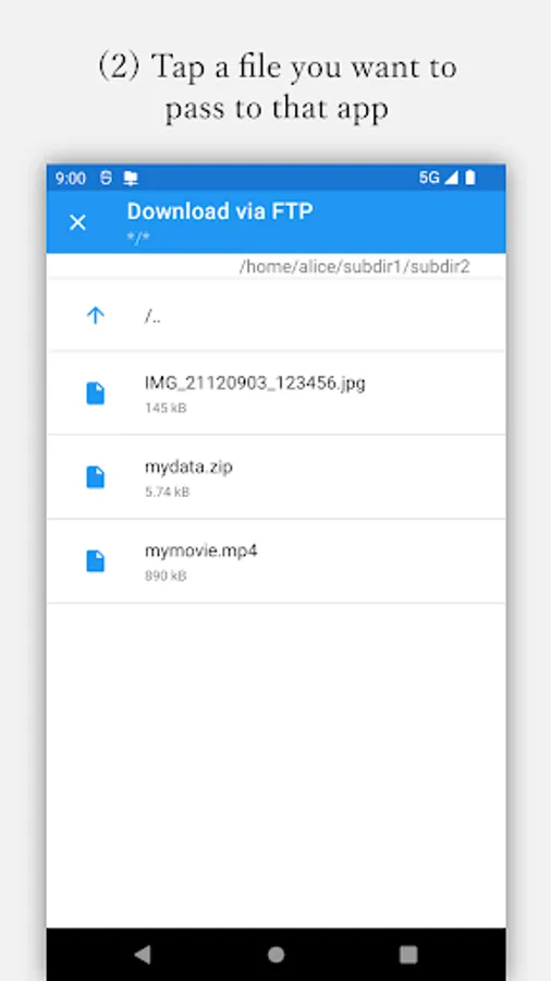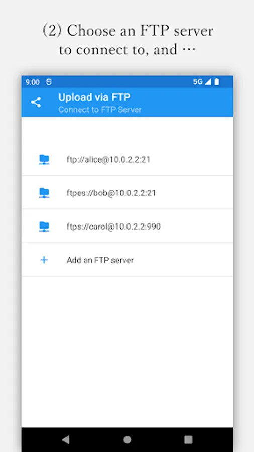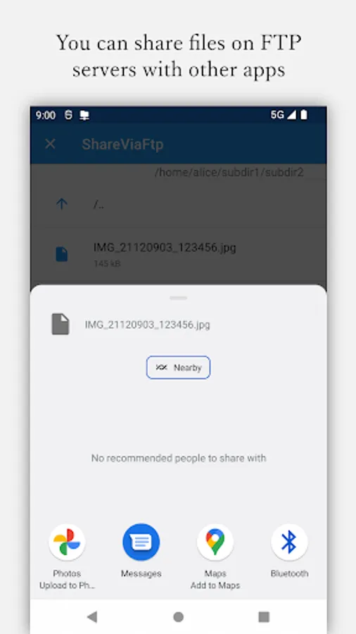 This app can be launched from the "Share" action of another app to provide FTP communication capability to that app.