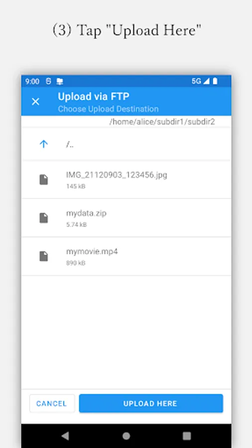 For example, you can launch this app from a camera app and upload a photo you have taken to an FTP server.