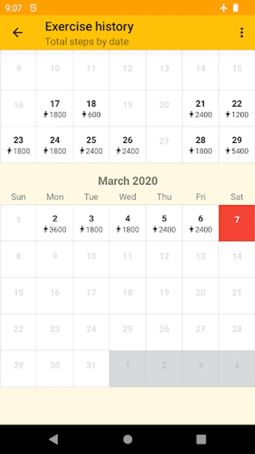 The Exercise History calendar shows past exercise times or steps by date.