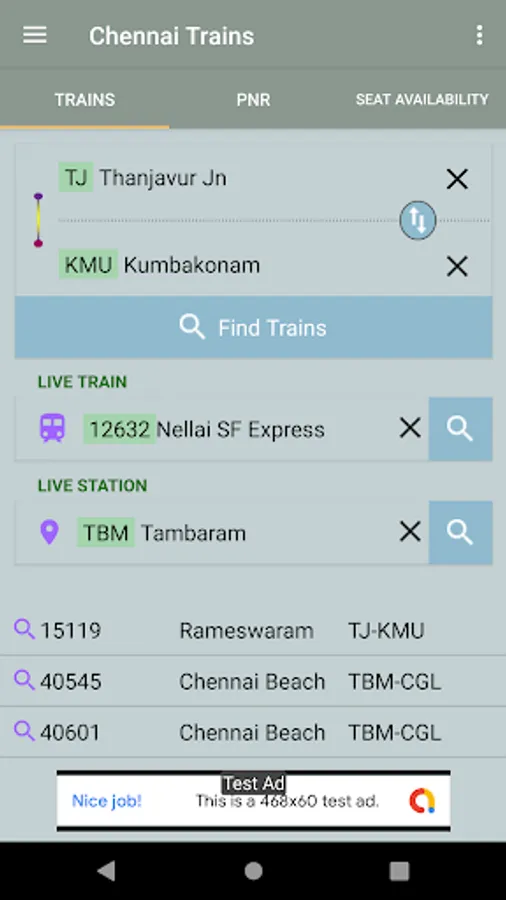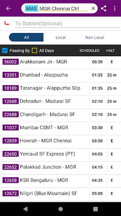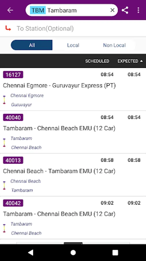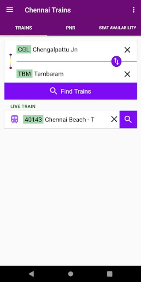 This application provides details about Chennai local trains.