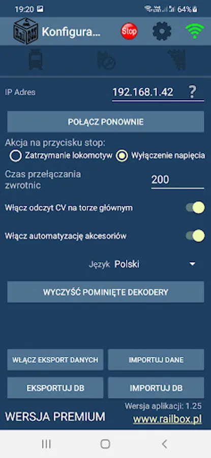 This App allows you to control your model railroad using NMRA DCC command stations such as RailBOX RB 1100, Digikeijs® DR5000, Roco Z21® via Z21® LAN protocol.