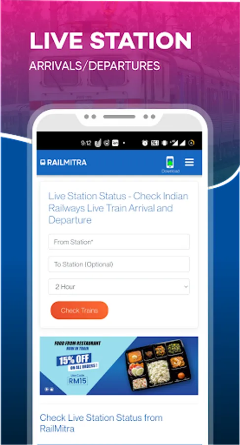 Besides train-related enquiries, RailMitra also provides food in trains. Trusted by over 50 lakh passengers, the app is packed with useful features such as checking trains between stations, upcoming trains between stations, seat availability, and train timetable.